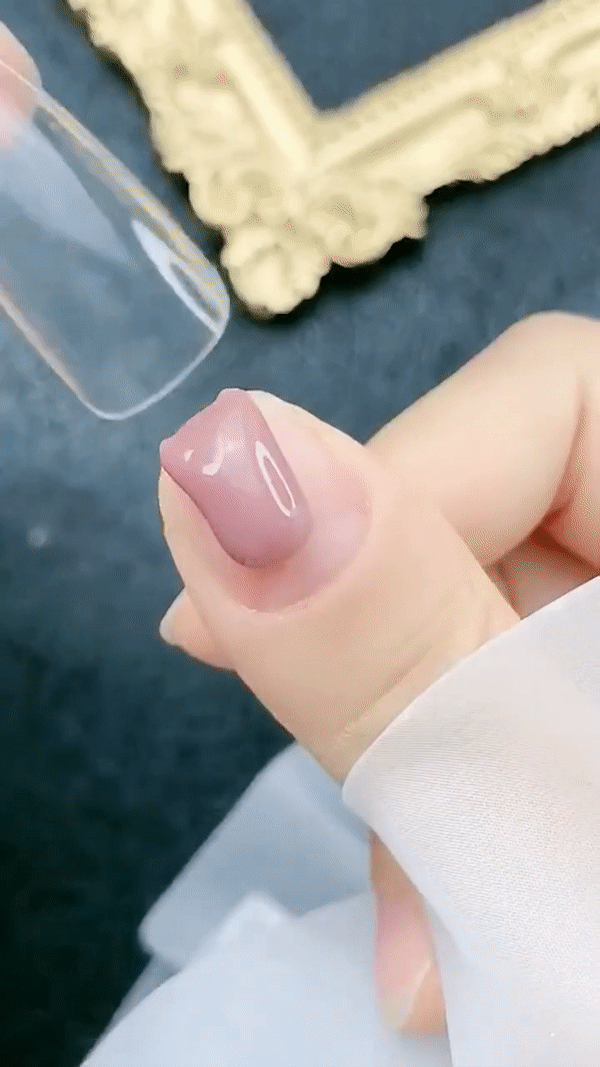 Step 3: Place the tip + polygel on your nail and hard under an LED lamp 60-90 seconds